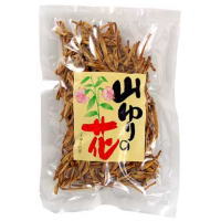 山ゆりの蕾を乾燥させたものです。別名「金針菜」とも呼ばれます。ほうれん草よりも鉄分が豊富で貧血の方にもお勧めです。お湯で戻して炒め物や、スープにどうぞ |